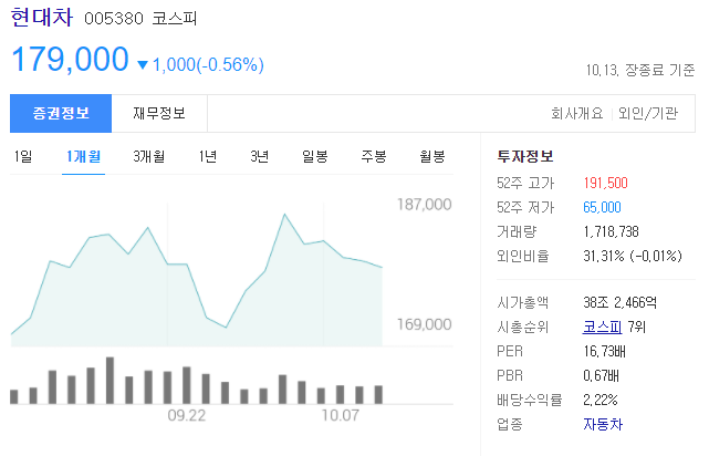 현슬라라고 불리기도 하면서 10만원대에서 무려 19만원까지 상승했었던 현대자동차였는데, 최근들어 주가가가 슬금슬금 빠지고 있습니다. 그린뉴딜+수소차+니콜라 스캠 등으로 상승여력이 굉장히 충분했었는데 (저도 이 때 들어가서 10%정도 벌었지만) 다시 하락추세로 꺾여가는 모습입니다. 코나 리콜이 하락 원인 중에 큰 지분을 차지할 것 같은데요.