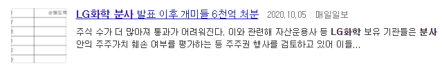 LG화학은 정말 안 좋은 일이 연달아 겹치게 되어 굉장히 곤혹스러울 것 같습니다. 기업이 실적만 잘 나오면 되는 것이 아니라 주주친화적으로 운영을 해야하는건데 통보식으로 분사하는 건 좀 선 넘은거죠...
