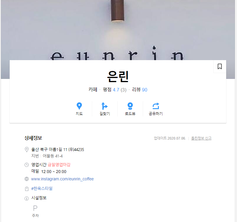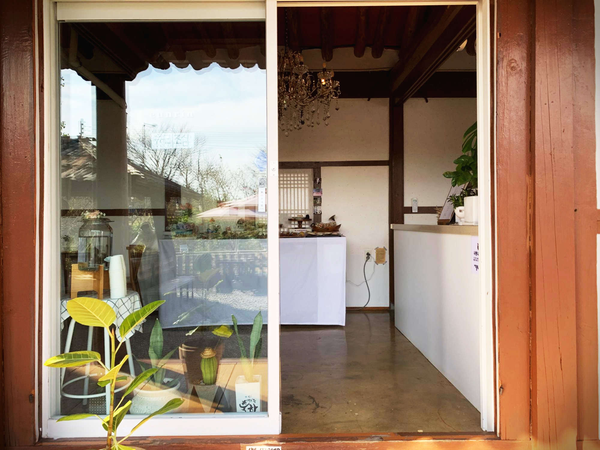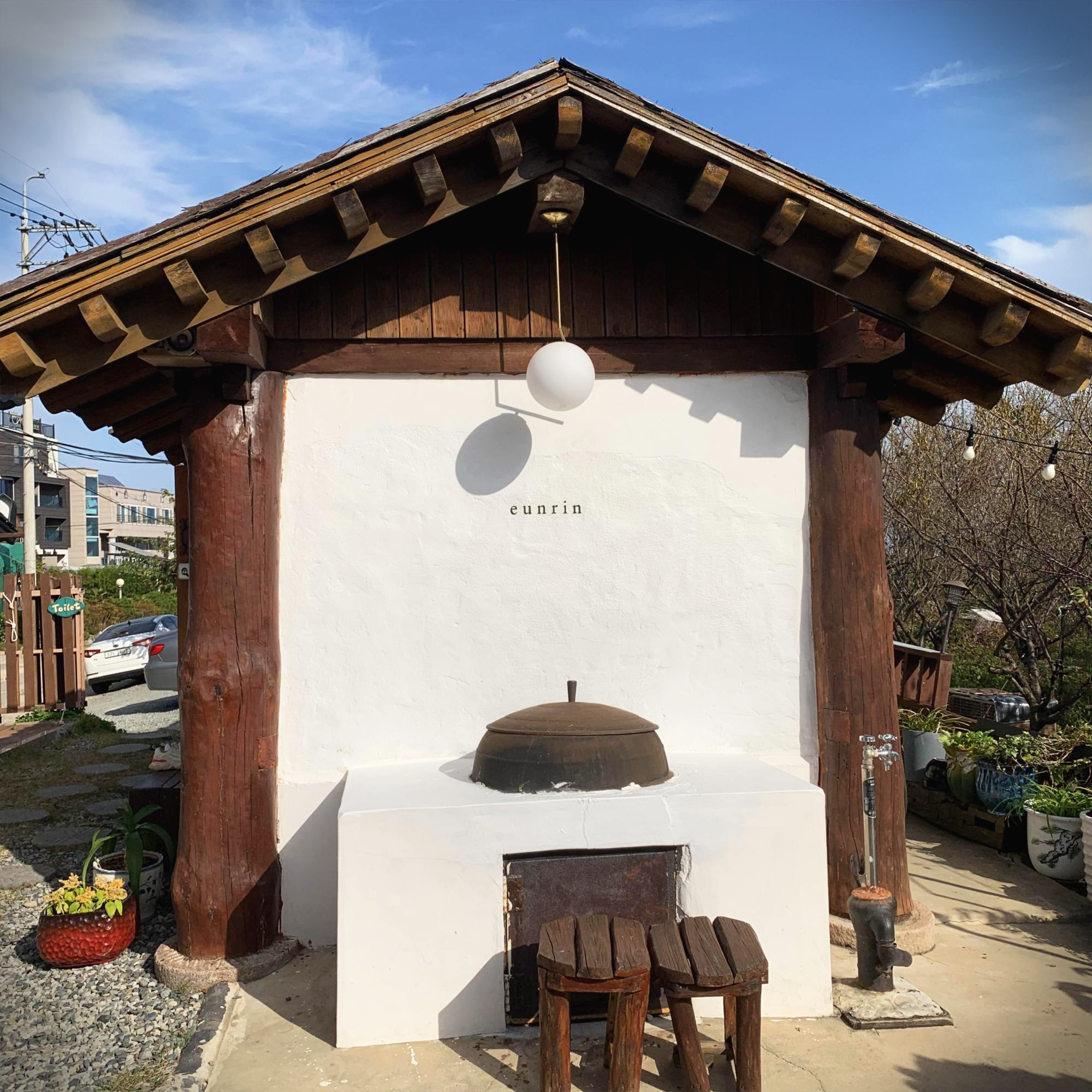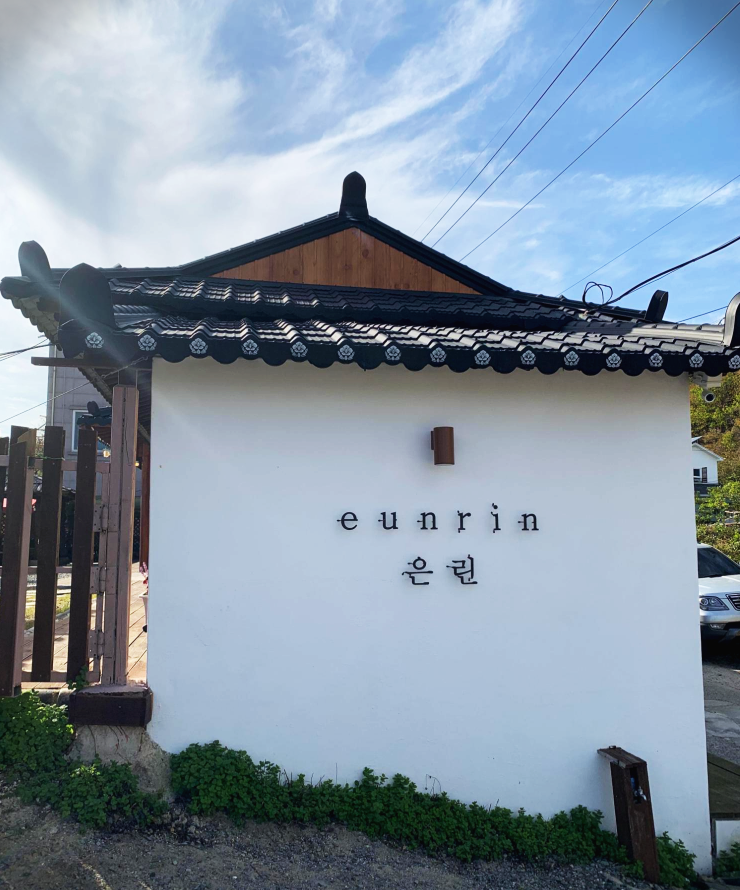 바닷가가 보이는 길로 쭉 가다가보면 한옥으로 지어진 카페가 하나 보입니다. 처음에 도착했을 때 부지는 그렇게 크지 않은데 안으로 들어가면 의외로 공간이 꽤 넓습니다 ㅎㅎ 외부에 은린, eunrin이라고 적혀있는 벽이 깔끔하고 감성이 돋더라구요. 일단 외부는 합격! 한가지 아쉬운 점은 주차장이 그렇게 크지 않아서 주변에 논길에 대고 그러더라구요. 조심해서 주차하세요 :)
