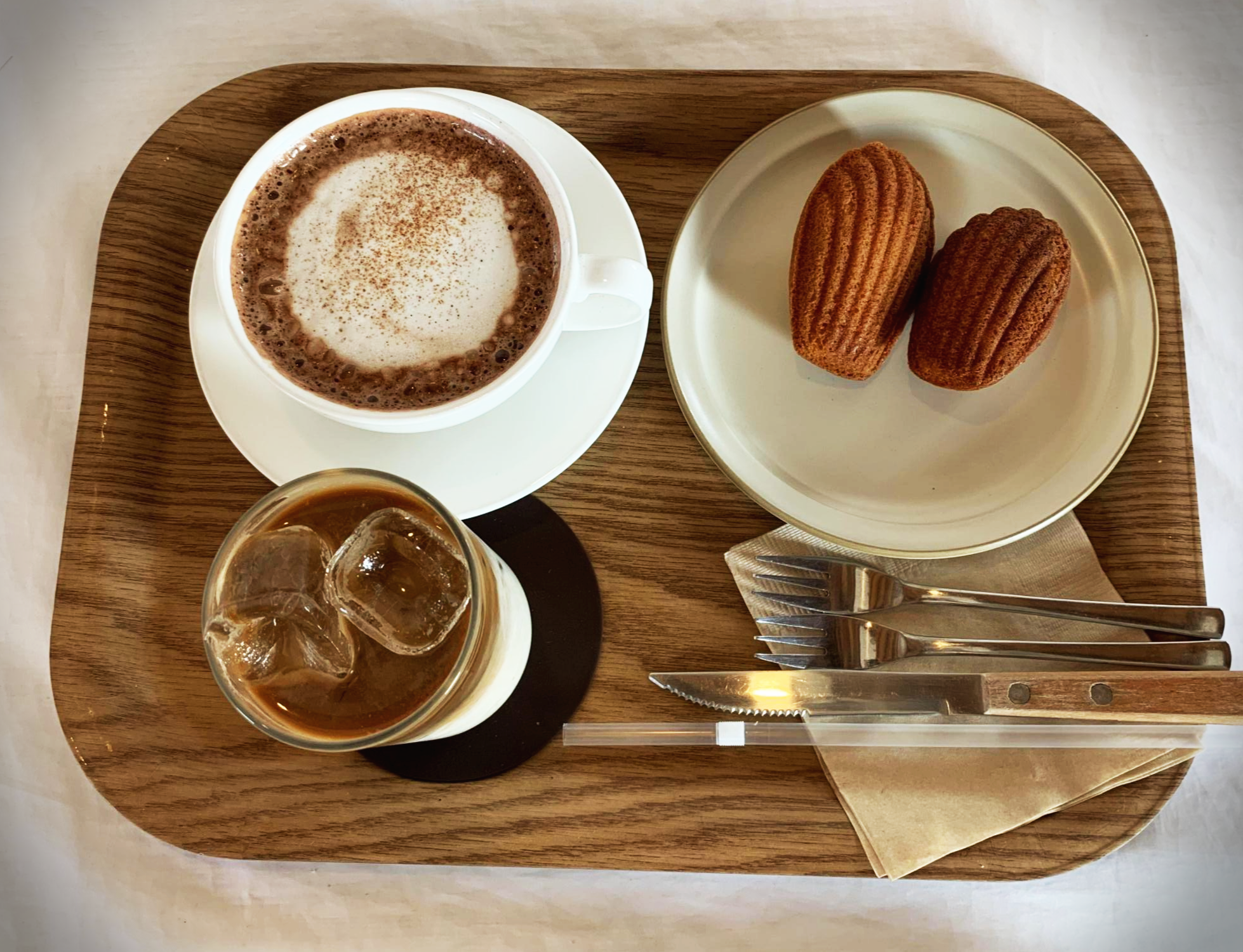 기다리다보니 진동벨이 울려서 커피와 빵을 받아왔습니다. 제가 고른 커피넛 라떼 설명에 견과류 베이스에 에스프레소가 들어갔다고 했는데 정말 뭔지 모를 견과류 맛이 커피맛과 어우러져서 꽤 고급진 맛이었습니다. 와이프가 시킨 초코라떼는 그냥 미떼 핫초쿄 맛 ㅋㅋㅋ
