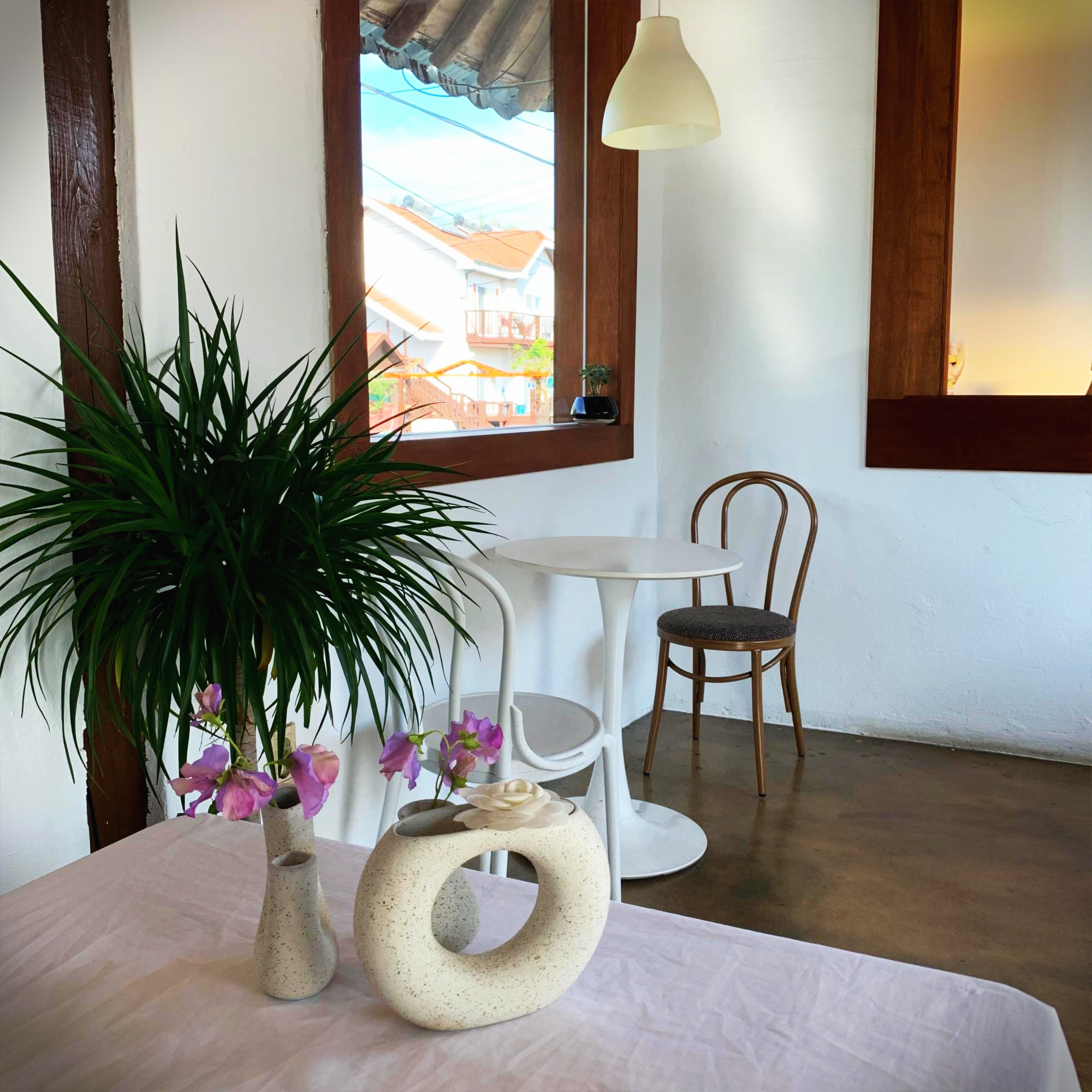 은린 카페에선 한옥처럼 방이 여러 개 나눠져있어서 원하는 방에 앉아 커피를 마실 수도 있습니다. 제가 갔을 땐 사람이 그닥 없어서 정말 둘이서만 앉아있는 느낌이었어요. 바닷가 근처라 그런지 그렇게 시끄럽지도 않아서 제대로 힐링되는 시간이었습니다.