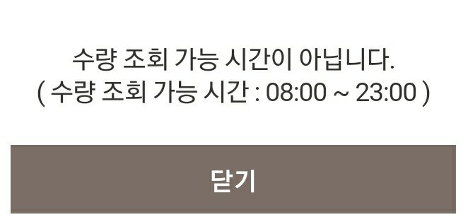 다만 수량조회 가능시간은 08시부터 23시까지이므로 새벽에 조회해서 아침에 수령하겠다~하는 계획은