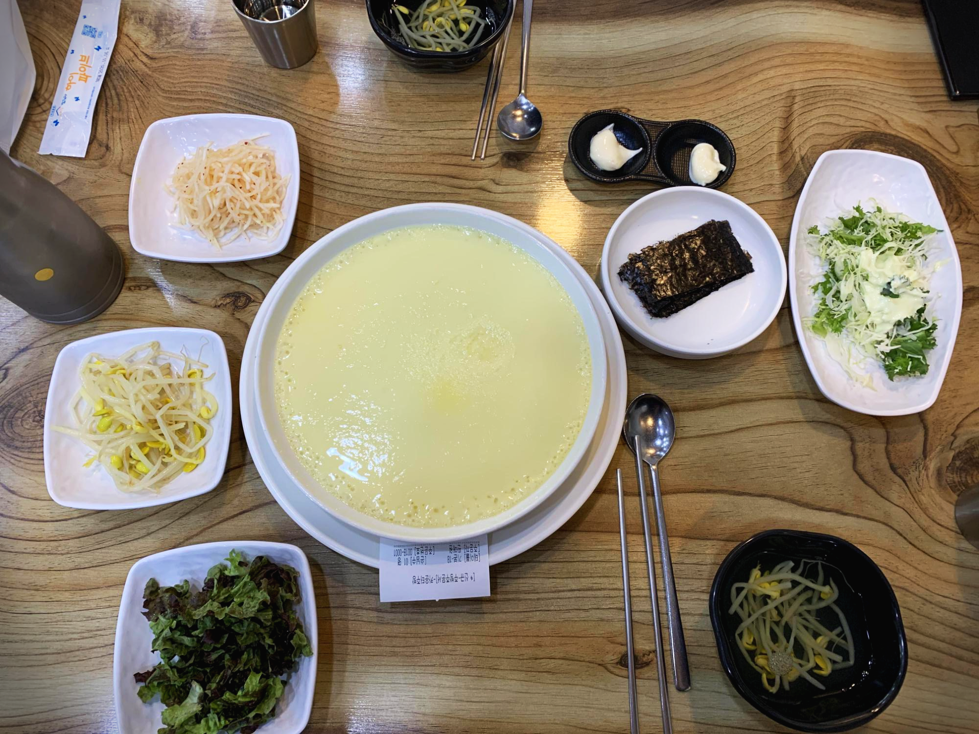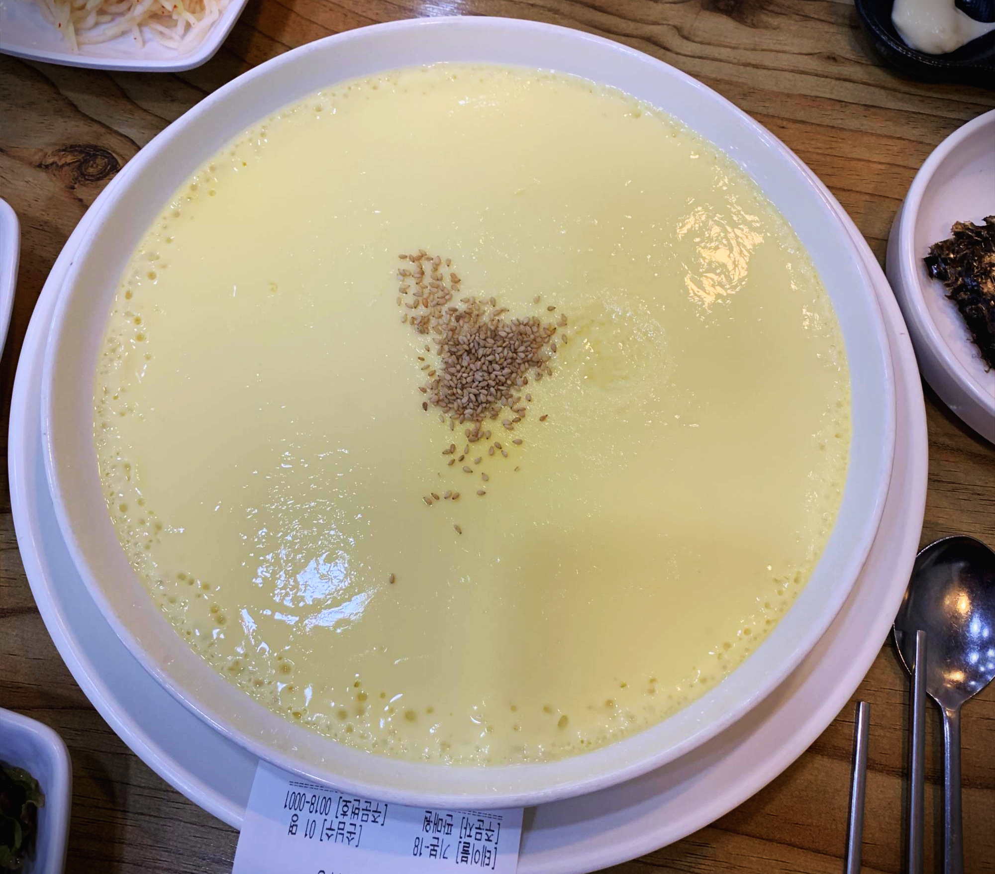 가운데 왕따시만한게 왕계란찜입니다. 이름값 하지요? 점심시간 때라 그런지 메뉴가 금방금방 나와서 좋았습니다. 맛있는거 먹으려고 오래 기다리면 뭘 먹어도 맛있겠지만 좀 귀찮잖아요? 아래는 왕계란찜 클로즈업 사진입니다.