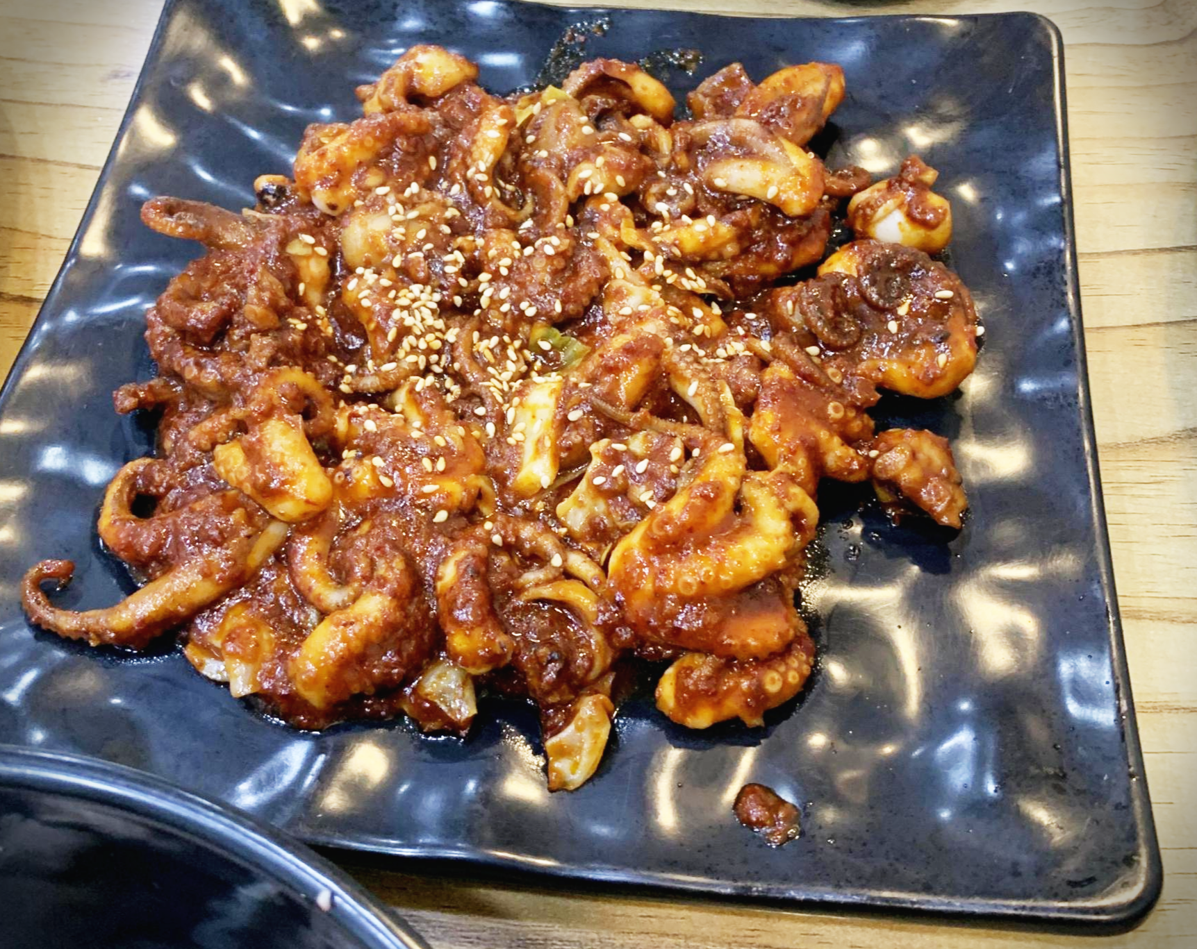 사진을 찍으려고 하니 종업원분이 오셔서 깨를 톡톡 뿌려주고 가셨습니다. 확실히 깨가 있는게 비쥬얼적으로 더 좋아보이네요 ㅎㅎ 실제로 먹을 때는 그닥 차이는 안 느껴졌지만요 ^^; 보드라운 왕계란찜을 한두 스푼 먹고 있으니 드디어 메인메뉴 불향쭈꾸미볶음이 나왔습니다.