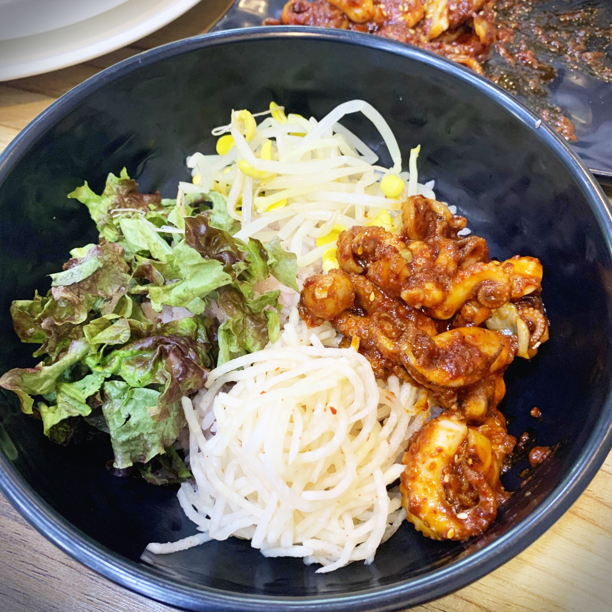 그렇게 오래 기다리진 않았지만 이거 먹으려고 차로 30분을 타고 왔더니, 정말 반가운 기분도 들더군요. 쭈꾸미와 함께 나오는 무채, 콩나물, 상추 등을 같이 넣고 비벼서 김에 마요네즈와 함께 한 입 싸먹어 보도록 합시다.