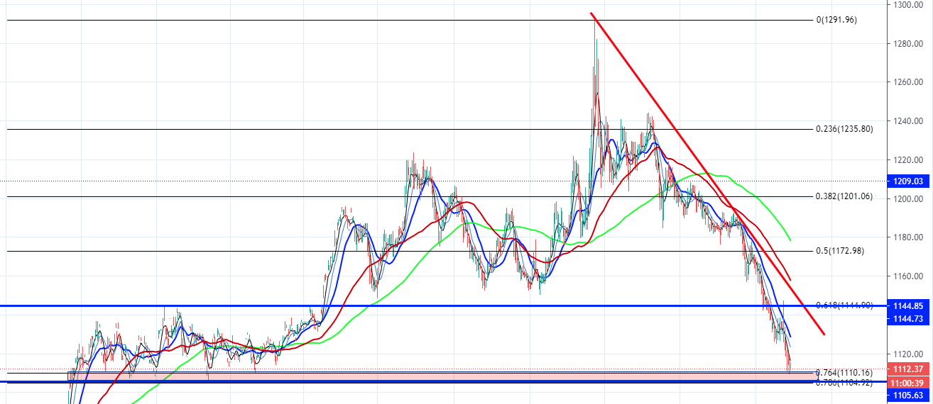 ② 지지구간은 1,104원~1,110원에 단기 반등할 수도 있지만, 하락추세를 막을지는 의문