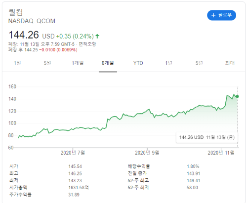 저야 미국주식 중에 퀄컴의 비중이 제일 크기 때문에 이런 소식이 좋을 수 밖에 없습니다. 이미 3분기의 실적이 초대박 어닝서프라이즈를 기록하여 주식이 크게 상승하였는데 앞으로도 꾸준히 상승할 수 있을까? 하는 걱정이 약간 있었거든요. 딱 3분기가 끝나는 시점에 제재가 시작되었으니 실적이 좀 낮아질 수도 있겠구나, 마음의 준비를 해야겠다 했었는데 이렇게 조금의 탈출구가 마련되어 안도의 한숨을 쉬었습니다.