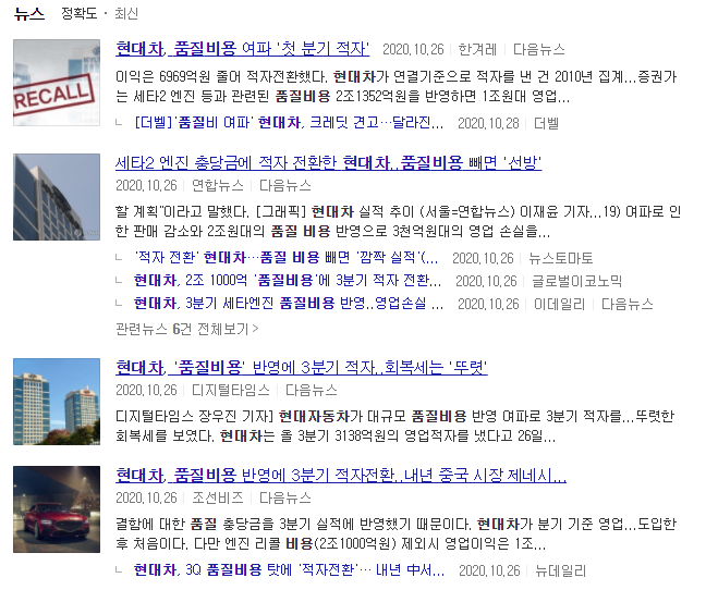 그리고 해당 건 및 미래의 품질 이슈가 생길 때를 대비하여 '품질 비용'이라는 이름으로 2조원대의 비용이 들어가게 됩니다. 이 때문에 아래에서 설명할 20년 3분기 실적에도 악영향을 미치게 됩니다.