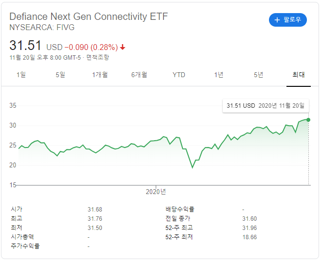 ▶미국 5G ETF : FIVG ETF (Defiance Next Gen Connectivity ETF)