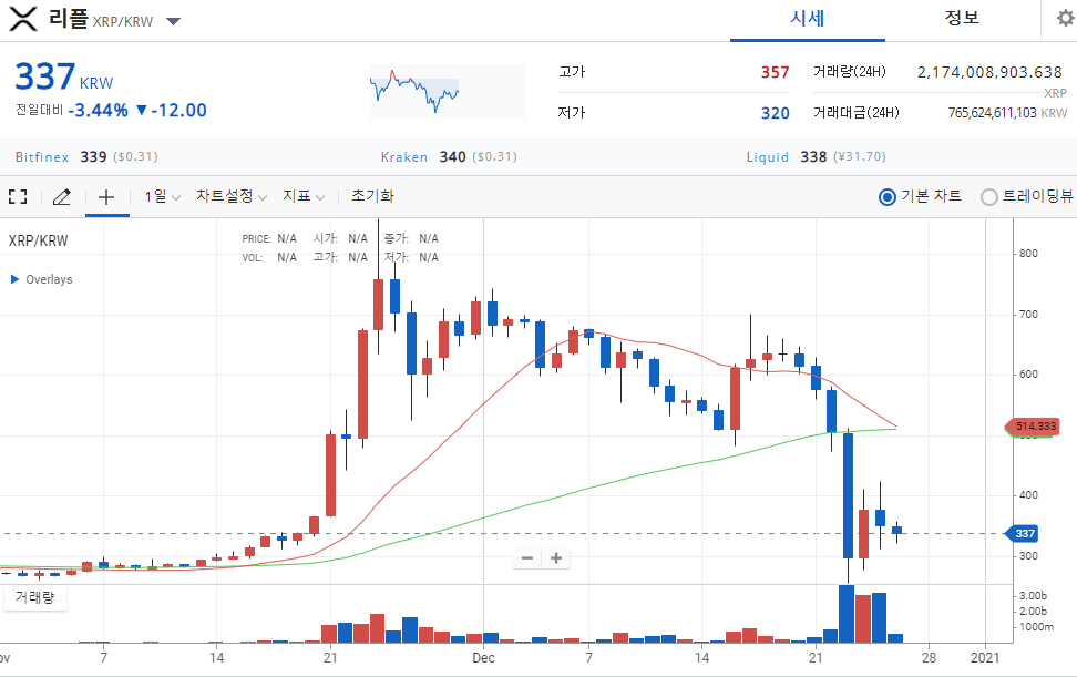 안녕하세요! 더블가리입니다. 최근에 리플 고소사건 때문에 코인판 전체가 난리도 아니었습니다. 원래도 리또속(리플에 또 속냐) 라는 말이 유행할 정도로 투자하기 까다로운 코인으로 유명했었죠. 그런데 이번에 제대로 리또속을 보여주며 모든 코인을 대폭락 시켰고 리플 자체도 거의 몇일 만에 반토막이 날 정도였습니다 (700 → 300).