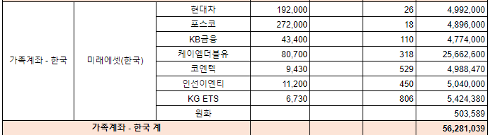 현재 ①가족 자산으로 투자하는 가족계좌와 ②제 개인적인 자산으로 투자하는 개인계좌가 있습니다. 우선 가족계좌부터 확인해볼게요.