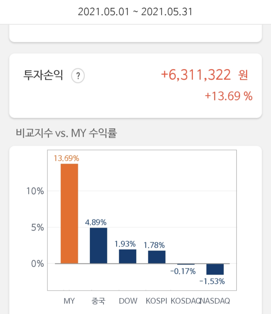 안녕하세요! 더블가리입니다. 5월은 제 인생에서 중요한 여러 개 일들이 일어났었던 한 달이었습니다. 그로 인해 주식계좌 변화가 많이 생겼습니다. 하나씩 하나씩 얘기하면서 21년 5월 투자실적을 살펴보도록 하겠습니다.