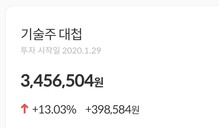 2. 투자금액 : 기존 3,530,784원 → 현재 3,456,504원 (74,280원 하락)