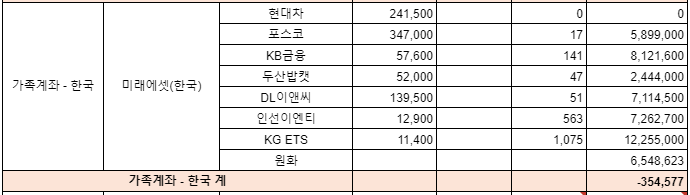 현재 ①가족 자산으로 투자하는 가족계좌와 ②제 개인적인 자산으로 투자하는 개인계좌가 있습니다. 우선 가족계좌부터 확인해볼게요.