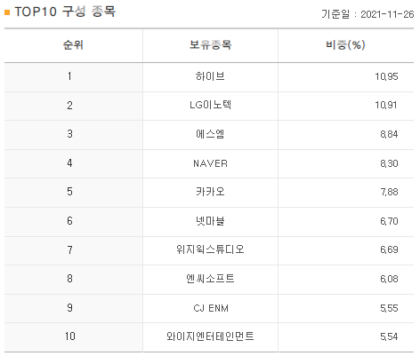 이 ETF 역시 한국의 메타버스 관련 업체인 ETF입니다. 그렇다면 어떤 종목에 투자하는지 리스트를 보시죠.