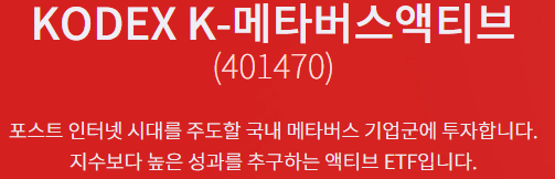 - KODEX K-메타버스액티브 ETF는 메타버스와 관련한 국내 핵심, 강소기업들에 투자하는 ETF입니다.